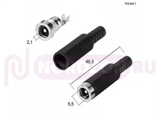 Заказать звонокГнездо (штекер) питания TC 5.5x2.1mm Cable штырьковый