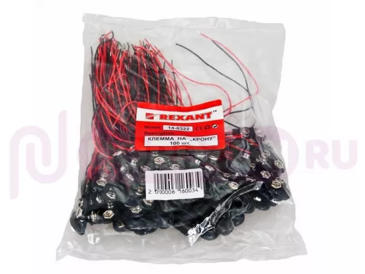 Клемма на крону REXANT предназначена для подключения питания к измерительному инструменту, различным пультам дистанционного управления, бытовым устройствам (радиоприемники, телефонные аппараты), радиоуправляемым моделям и другой электротехнике, имеющей совместимые по форме контакты типа "Крона". Клемма состоит из контактной группы и двух изолированных многожильных проводов длиной 15 см, подготовленных (окончания зачищены и облужены оловом) к использованию. Сечение жилы проводника составляет 0.3 мм.