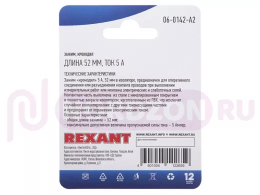 Зажим крокодил, длина 52 мм, ток 5A, (2шт. ) REXANT