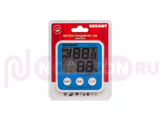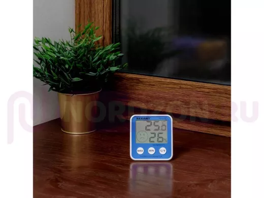 Комнатная метеостанция предназначена для измерения показаний температуры и влажности в помещении. Регистрирует в памяти максимальное и минимальное значения температуры и влажности. Отображает общий уровень метеокомфорта в помещении. Имеет настольную подставку и магнитное крепление.