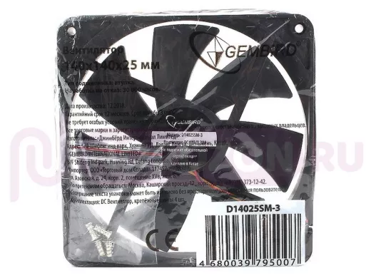 Заказать звонокВентилятор +12В; 140х140х25мм; Gembird, втулка, 3 pin, провод 40 см