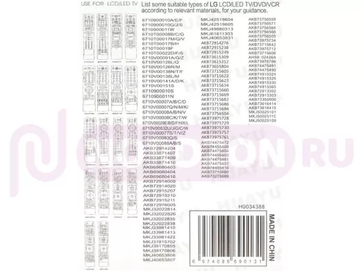 Телевиз. пульт HUAYU (for LG) RM-D656 корпус 6710V00151S plazma универсальный пульт