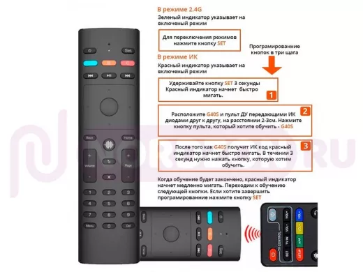 Пульт работает от двух батареек ААA (в комплекте нет).