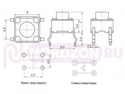 Заказать звонокKAN0610-0731B 6x6x7 mm SWT-6 Тактовые кнопки