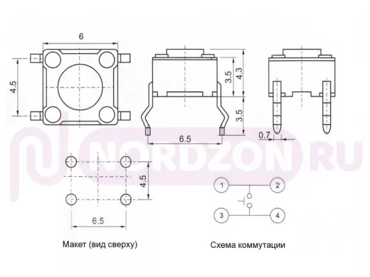 Заказать звонокKAN0611-0431B 6x6x4.3 mm Тактовые кнопки