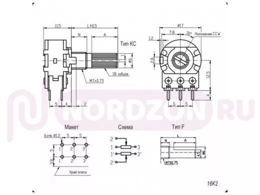 Заказать звонокПотенциометр 16K2 F 2x10k