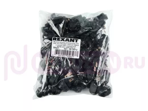Выключатель клавишный 12V 20А (3с) ON-OFF черный ОВАЛ с желтой LED подсветкой REXANT