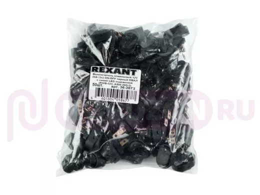 Выключатель клавишный 12V 20А (3с) ON-OFF черный ОВАЛ с зеленой LED подсветкой REXAN