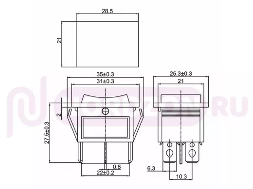 Выключатель клавишный 250V 15А (6с) ON-OFF-ON синий с подсветкой и нейтралью предназначен для коммутации электрических цепей переменного тока напряжением до 250В. Клавишные (Рокерные) выключатели применяются в качестве комплектующих изделий различного электрооборудования (в сетевых фильтрах и удлинителях, аудио-оборудовании, блоках питания, электроустановках на различных производствах, автомобилях, и многих других местах). Такой клавишный переключатель имеет три положения. Принцип действия основан на перемещении клавиши в одну из позиций. Для переключения в нужное положение требуется приложить некоторые усилия на клавишу. Монтаж осуществляется без применения винтов на плоских панелях толщиной от 0.8мм до 3мм. Подключение контактов осуществляется плоской клеммой 6.6мм, либо с помощью пайки.