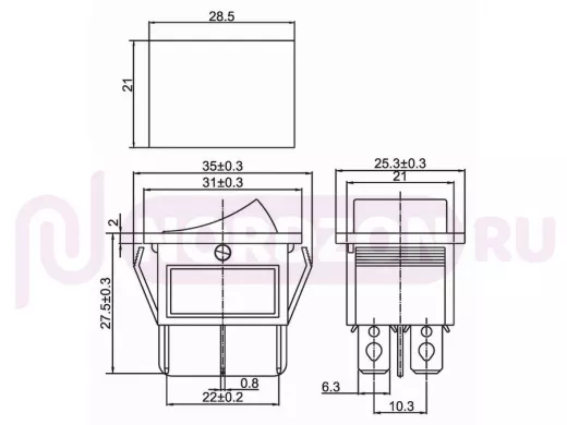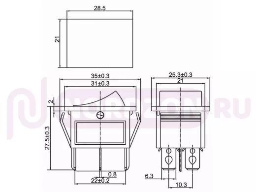 Выключатель клавишный 250V 15А (6с) ON-ON синий с подсветкой предназначен для коммутации электрических цепей переменного тока напряжением до 250В. Клавишные (Рокерные) выключатели применяются в качестве комплектующих изделий различного электрооборудования (в сетевых фильтрах и удлинителях, аудио-оборудовании, блоках питания, электроустановках на различных производствах, автомобилях, и многих других местах). Такой клавишный переключатель имеет два положения. Принцип действия основан на перемещении клавиши в одну из позиций. Для переключения в нужное положение требуется приложить некоторые усилия на клавишу. Монтаж осуществляется без применения винтов на плоских панелях толщиной от 0.8мм до 3мм. Подключение контактов осуществляется плоской клеммой 6.6мм, либо с помощью пайки.