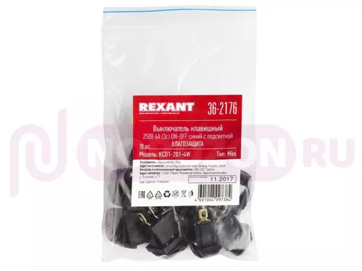 Заказать звонокВыключатель клавишный 250V 6А (3с) ON-OFF синий с подсветкой Mini ВЛАГОЗАЩИТА REXANT