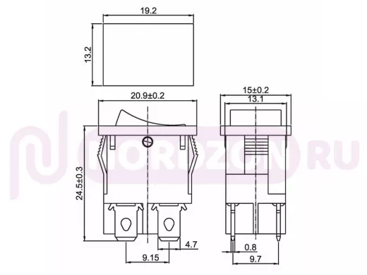 Выключатель клавишный 250V 6А (4с) ON-OFF черный Mini предназначен для коммутации электрических цепей переменного тока напряжением до 250В. Клавишные (Рокерные) выключатели применяются в качестве комплектующих изделий различного электрооборудования (в сетевых фильтрах и удлинителях, аудио-оборудовании, блоках питания, электроустановках на различных производствах, автомобилях, и многих других местах). Такой клавишный переключатель имеет два положения. Принцип действия основан на перемещении клавиши в одну из позиций. Для переключения в нужное положение требуется приложить некоторые усилия на клавишу. Монтаж осуществляется без применения винтов на плоских панелях толщиной от 0.8мм до 3мм. Подключение контактов осуществляется плоской клеммой, либо с помощью пайки.