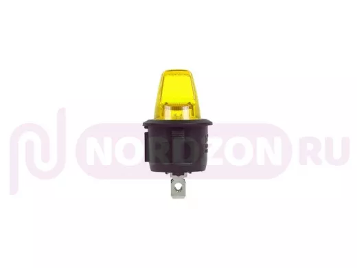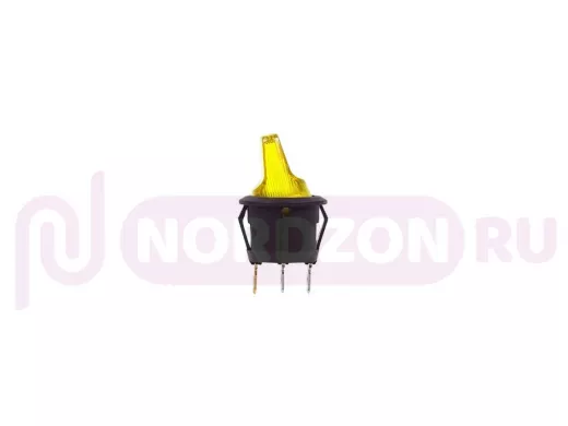 Выключатель клавишный круглый 12V 16А (3с) ON-OFF желтый с подсветкой предназначен для коммутации электрических цепей напряжением 12В. Клавишные (Рокерные) выключатели применяются в качестве комплектующих изделий различного электрооборудования (аудио-оборудовании, блоках питания, электроустановках на различных производствах, автомобилях, и многих других местах). Такой переключатель имеет два положения и специфическую форму клавиша-тумблер. Принцип действия основан на перемещении клавиши в одну из позиций. Для переключения в нужное положение требуется приложить некоторые усилия на клавишу. Монтаж осуществляется без применения винтов на плоских панелях толщиной от 0.8мм до 3мм. Подключение контактов осуществляется плоской клеммой, либо с помощью пайки.