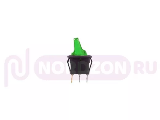 Выключатель клавишный круглый 12V 16А (3с) ON-OFF зеленый с подсветкой предназначен для коммутации электрических цепей напряжением 12В. Клавишные (Рокерные) выключатели применяются в качестве комплектующих изделий различного электрооборудования (аудио-оборудовании, блоках питания, электроустановках на различных производствах, автомобилях, и многих других местах). Такой переключатель имеет два положения и специфическую форму клавиша-тумблер. Принцип действия основан на перемещении клавиши в одну из позиций. Для переключения в нужное положение требуется приложить некоторые усилия на клавишу. Монтаж осуществляется без применения винтов на плоских панелях толщиной от 0.8мм до 3мм. Подключение контактов осуществляется плоской клеммой, либо с помощью пайки.