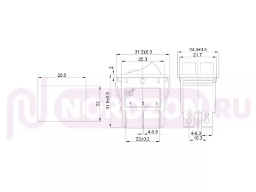 Выключатель клавишный 250V 15А (6с) ON-OFF черный с подсветкой ДВОЙНОЙ предназначен для коммутации электрических цепей переменного тока напряжением до 250В. Клавишные (Рокерные) выключатели применяются в качестве комплектующих изделий различного электрооборудования (в сетевых фильтрах и удлинителях, аудио-оборудовании, блоках питания, электроустановках на различных производствах, автомобилях, и многих других местах). Такой клавишный переключатель имеет два положения и две клавиши, что позволит раздельно коммутировать контактные группы. Принцип действия основан на перемещении клавиши в одну из позиций. Для переключения в нужное положение требуется приложить некоторые усилия на клавишу. Монтаж осуществляется без применения винтов на плоских панелях толщиной от 0.8мм до 3мм. Подключение контактов осуществляется плоской клеммой 6.6мм, либо с помощью пайки.