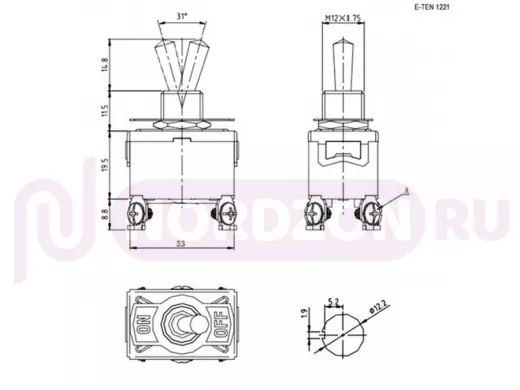 Заказать звонокТумблер E-TEN 1221 off-on RUICHI