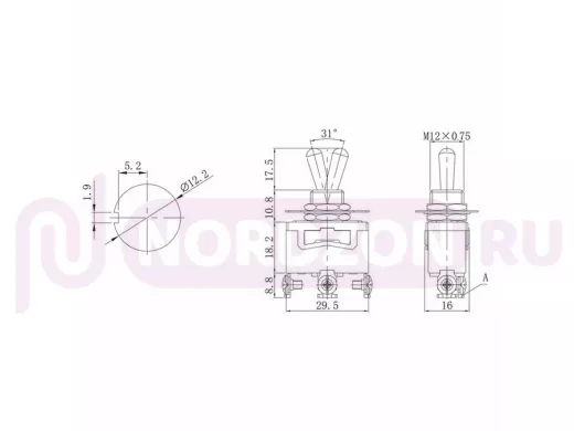 Тумблер 250V 15А (3c) ON-ON однополюсный предназначен для коммутации электрических цепей переменного тока напряжением до 250В. Такая разновидность переключателей применяется на лицевых панелях в качестве комплектующих изделий различного электрооборудования (в измерительных приборах, блоках питания, электроустановках на различных производствах, легковых и грузовых автомобилях, поездах и многих других местах). Отличительной особенностью тумблера является перекидной переключатель, принцип действия которого основан на его перемещении в одну из позиций. Для переключения в нужное положение требуется приложить некоторые усилия. Монтаж осуществляется без применения винтов на плоских панелях толщиной от 0.8мм до 4мм. Подключение контактов осуществляется с помощью винтов.