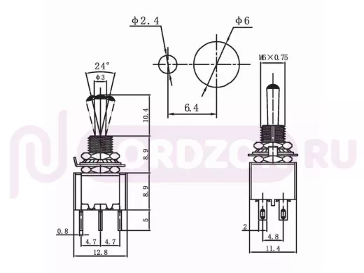 Тип переключения: ON-OFF-ON;