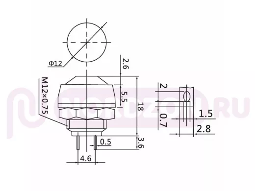 Выключатель-кнопка 250V 1А (2с) OFF-(ON) Б/Фикс красная Micro предназначена для коммутации электрических цепей переменного тока напряжением до 250В, путем включения-выключения питающего провода. Кнопки применяются в качестве комплектующих изделий различного электрооборудования (в аудио системах, блоках питания, электроустановках на различных производствах, автомобилях, и многих других местах). Разнообразные цветовые варианты исполнения позволяют эффективно комплектовать панели управления. Изделие состоит из двух основных частей - лицевой части (головки) и контактной, и имеет пружинный возвратный механизм. Монтаж осуществляется без применения винтов на плоских панелях толщиной от 0.5мм до 3мм, с помощью гайки. Подключение контактов осуществляется с помощью пайки.