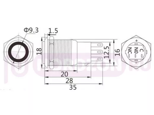 Заказать звонокКнопка без фиксации, металл 16мм., подсветка 12В.