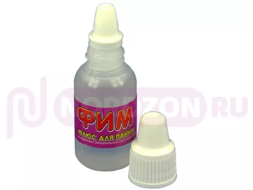 ФИМ - среднеактивный флюс для пайки. Сочетает в себе хорошую смачивающую способность, среднюю активность и умеренную кислотность остатков. Удаление остатков можно производить водой, а лучше специальным средством "Удалитель флюса".