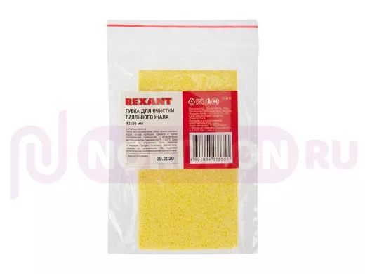 Губка для очистки паяльного жала 93x50 mm REXANT предназначена для удаления окислов с поверхности жала и избытков припоя (продлевает срок службы паяльника).