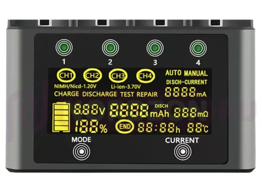 В режиме Manual возможен выбор предустановленных значений тока заряда/разряда, в режиме Auto устройство анализирует внутреннее сопротивление аккумулятора и автоматически установит оптимальные параметры заряда и разряда.