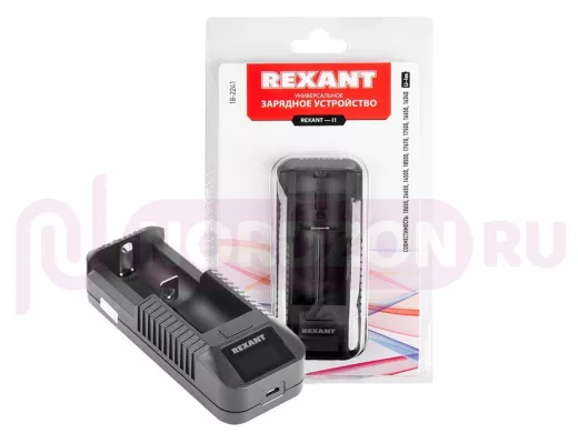 Зарядное устройство Rexant I1 предназначено для заряда литий-ионных (Li-ion) аккумуляторов следующих типоразмеров: 18650, 26650, 14500, 18500, 17670, 17500, 16650, 16340.