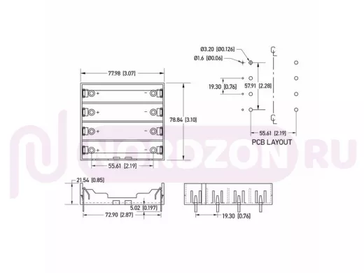 Заказать звонокБатарейный отсек для 4 х18650 Li-ion (на плату)