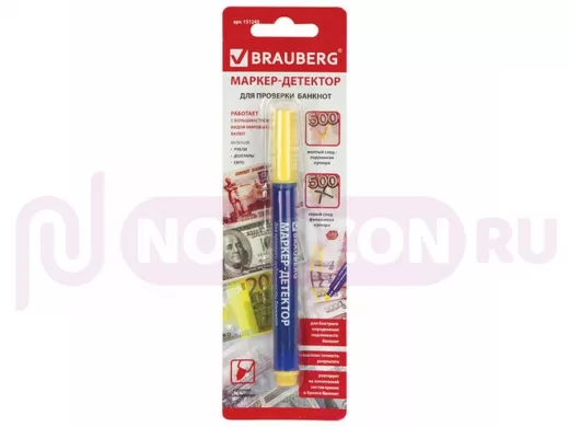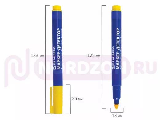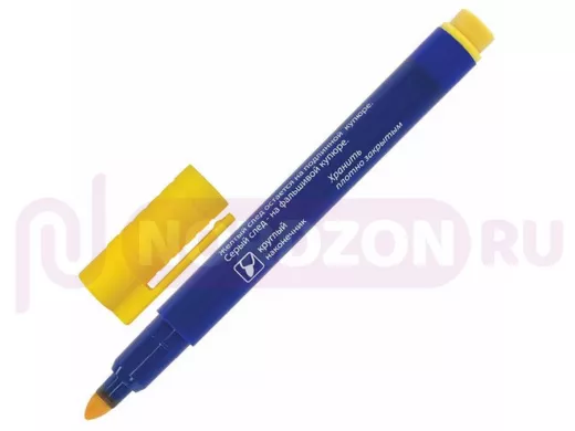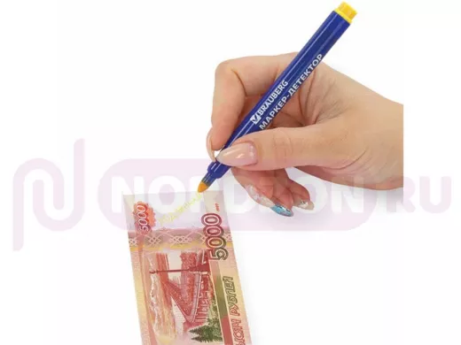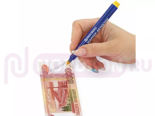 Предназначен для быстрой проверки подлинности банкнот. На проверяемую банкноту необходимо нанести любую метку маркером. Если метка приобретет светло-желтый оттенок - купюра подлинная, если метка потемнела - купюра фальшивая.