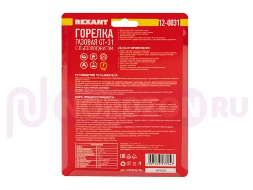 Перед началом работы с газовой горелкой REXANT необходимо ознакомиться с мерами предосторожности и инструкцией по эксплуатации на упаковке горелки!