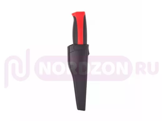 Нож идет в комплекте с пластиковым чехлом, который удобно крепить к одежде.