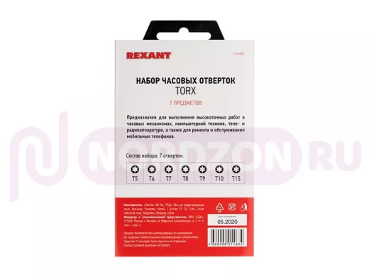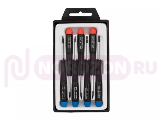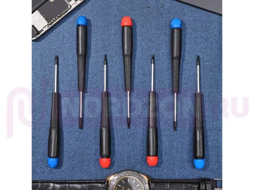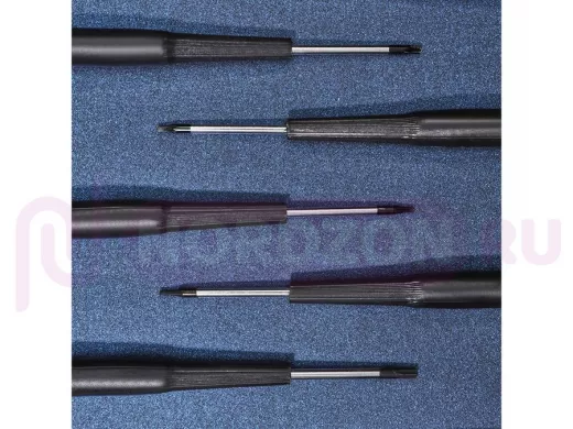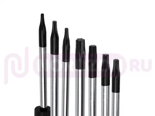 Набор часовых отверток "TORX" ht-5214 REXANT предназначен для выполнения высокоточных работ в часовых механизмах, компьютерной технике, теле и радиоаппаратуре, а также для ремонта и обслуживания мобильных телефонов. Отвертки изготовлены из высококачественной легированной стали с дополнительно термообработанными (для повышения износостойкости) наконечниками. Обрезиненная рукоятка с свободно вращающимся затыльником, обеспечивающим удобство при заворачивании микровинтов. В набор входят 7 отверток: Т5, Т6, Т7, Т8, Т9, Т10, Т15. Поставляется в пластиковой коробке с ложементом.