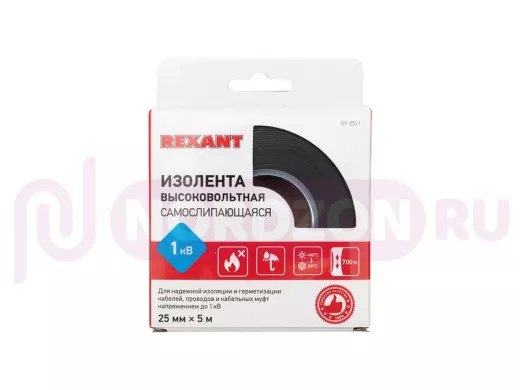 Заказать звонокИзолента 25мм х 5метров высоковольтная самослипающаяся REXANT (до 1кВ)