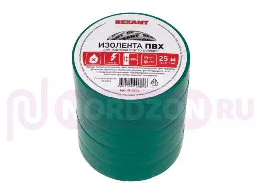 Заказать звонокИзолента 19мм х 25метров зеленая REXANT