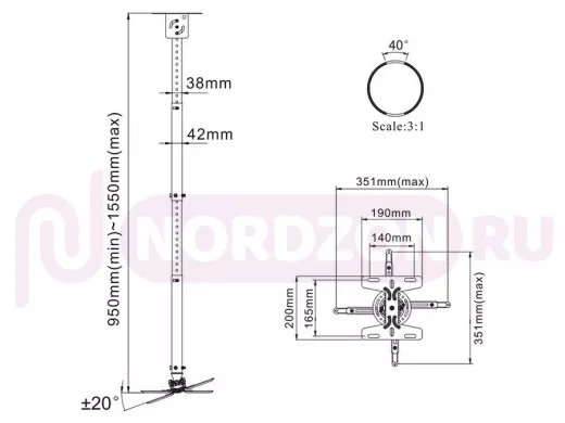 Кронштейн потолочный телескопический наклонно поворотный для проектора North Bayou NB T718-4 Черный