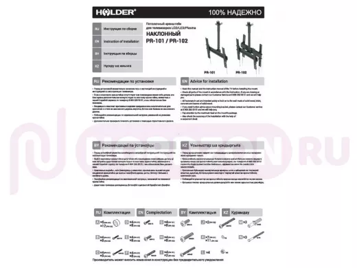 Заказать звонокКронштейн HOLDER PR-102-B, потолочный на 2 ТВ, нагрузка до 45+45 кг