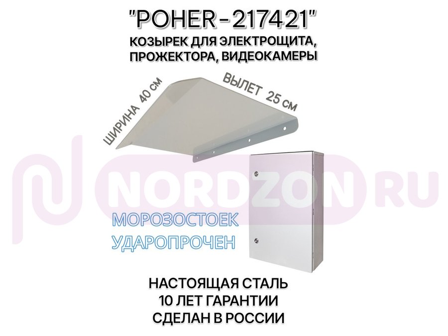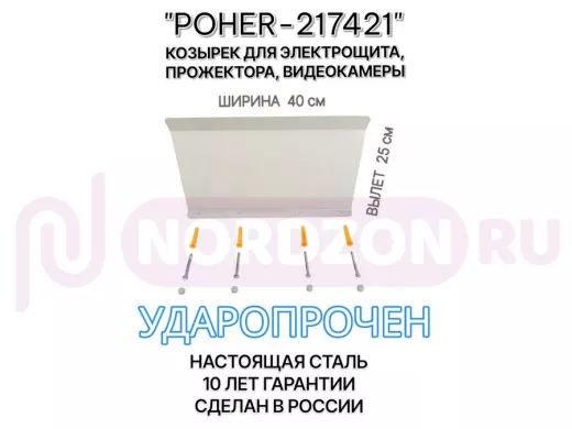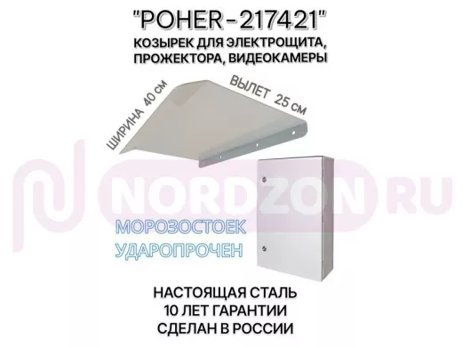 Заказать звонокКозырёк для защиты электрощита от дождя "POHER-217421" серый, ширина 41 см, вылет 27 см, сталь 2 мм