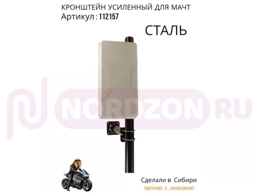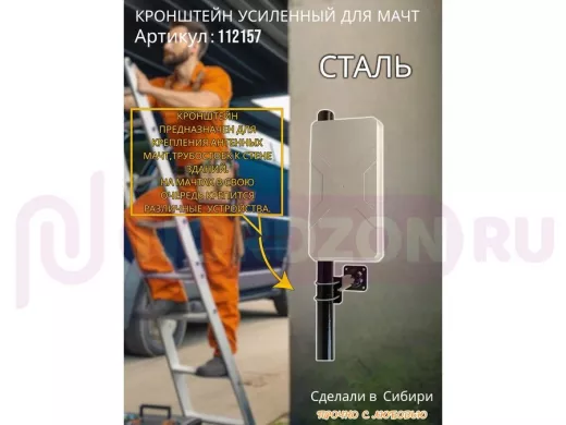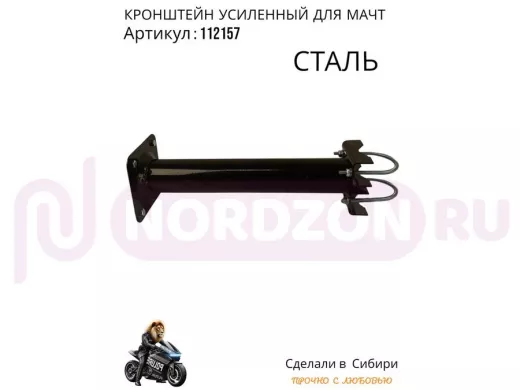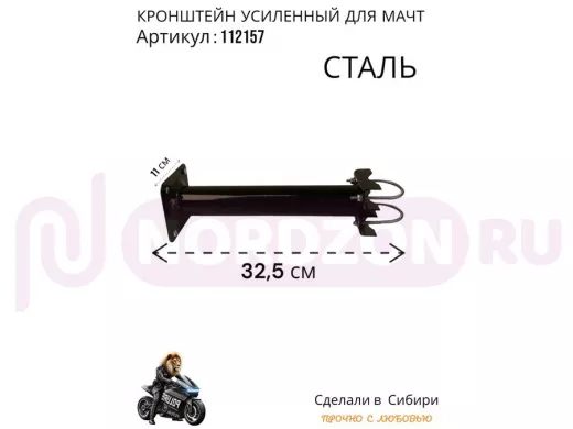 Кронштейн усиленный для мачт "МачтаКреп-112157" черный, два хомута, вылет 0,3м, зажим до 51мм