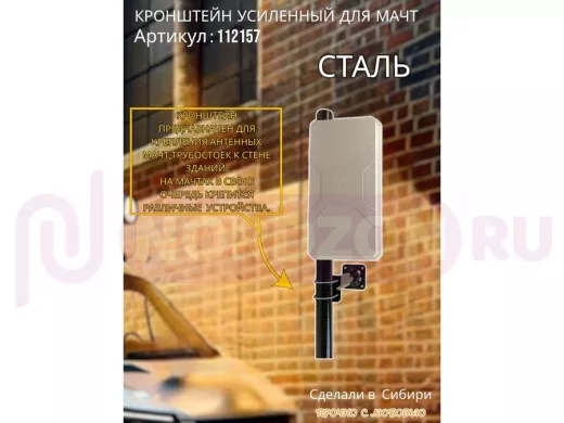 - Кронштейн предназначен для крепления к стене здания с выносом 30 см антенных мачт и трубостоек.
