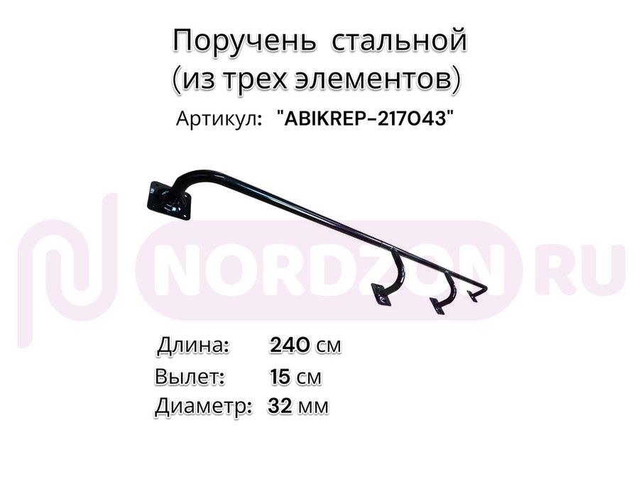 Поручень пристенный для зданий, длина 240см вылет 15см "ABIKREP-217043" черный 4 опоры, диаметр 32мм