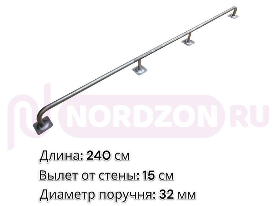 Поручень пристенный для зданий, длина 240см вылет 15см "ABIKREP-217055" серый, 4 опоры, диаметр 32мм